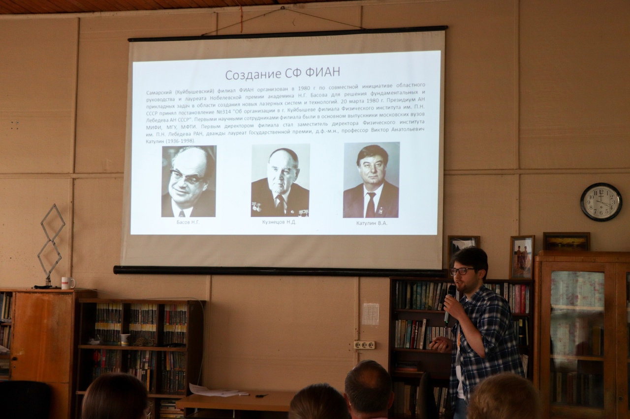 Новости. 11-15 ноября 2025 года в Самарском филиале ФИАН и Самарском национальном исследовательском университете им. академика С.П. Королева проходила XXIII Всероссийская молодежная Самарская конкурс-конференция по оптике, лазерной физике, и физике плазмы, посвященная 45-летию СФ ФИАН. В конференции приняли участие молодые исследователи из Самары, Москвы, Воронежа, Казани, Саратова, Сарова, Снежинска, Томска,Челябинска. Всего было сделано 96 конкурсных докладов (62 устных, включая 8 докладов школьной секции, 34 стендовых), 3 приглашенных доклада и 9 приглашенных пленарных лекций.