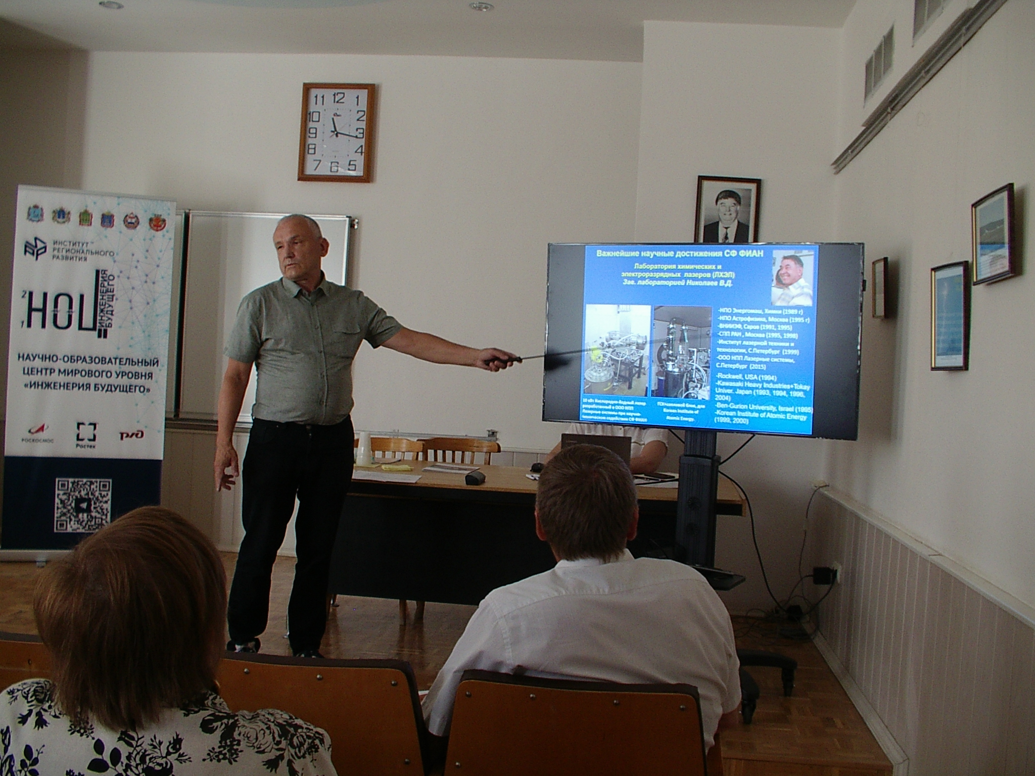 01 октября 2004г в СФ ФИАН состоялся объединенный научный семинар СФ ФИАН - СамГУ - СамГТУ - СГАУ, на котором выступил заслуженный деятель науки России, академик Академии естественных наук России, дважды лауреат Государственной Премии СССР, лауреат Премии им. М. В. Ломоносова I степени МГУ, профессор МГУ, главный научный сотрудник ИОФ РАН доктор физ.-мат. наук, А.А.Рухадзе с докладом Лучевое оружие функционального поражения - блеф и реальность