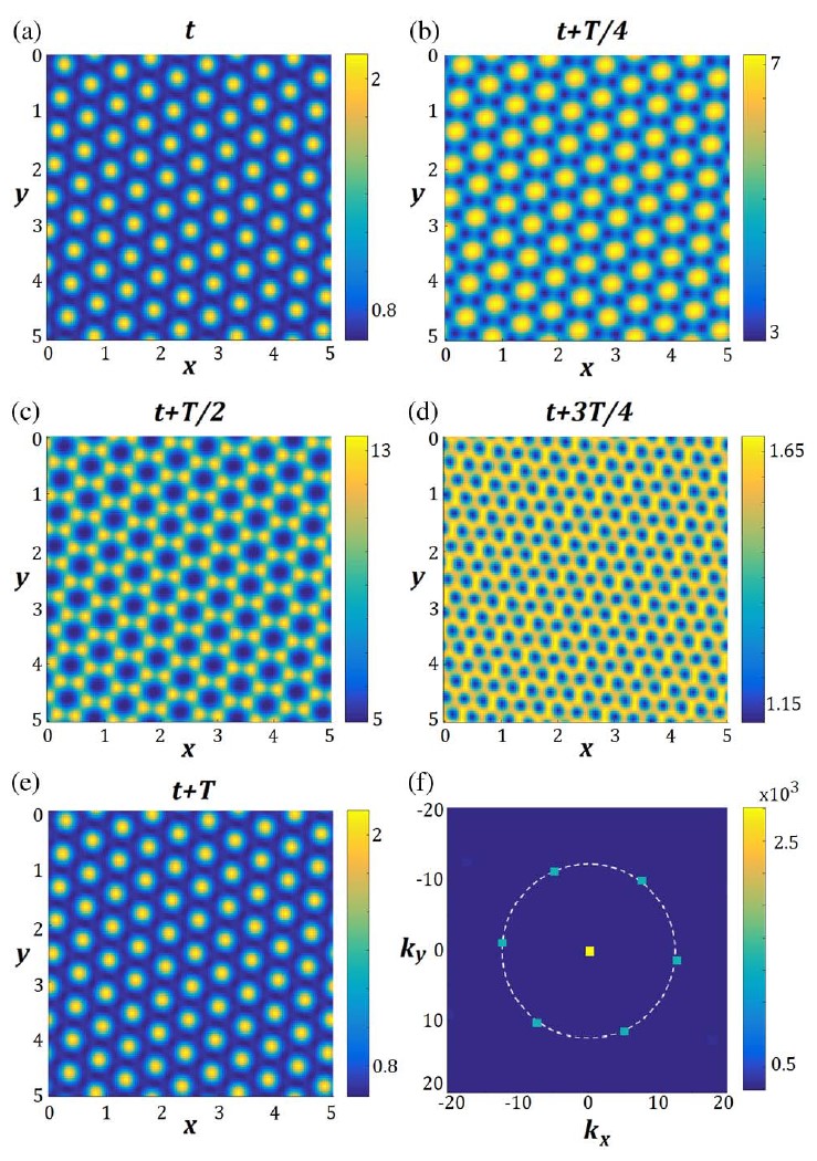 Лазер в режиме свободной генерации может демонстрировать устойчивую динамику лишь в определенном диапазоне значений параметра отстройки. Однако, модуляция параметра накачки в широкоапертурных лазерах, применяемая, в частности, для передачи полезного сигнала в высокоскоростных оптических каналах связи, приводит к неустойчивости Фарадея и возникновению нерегулярных поперечных структур поля, даже если подобрать параметры работающего лазера такими, чтобы в исходной системе не было волновой неустойчивости. Численное моделирование показало, что, например, при резонансе 2:1 реализуются структуры в виде модулированных полос, а при резонансе 1:1 в виде модулированных гексагонов.