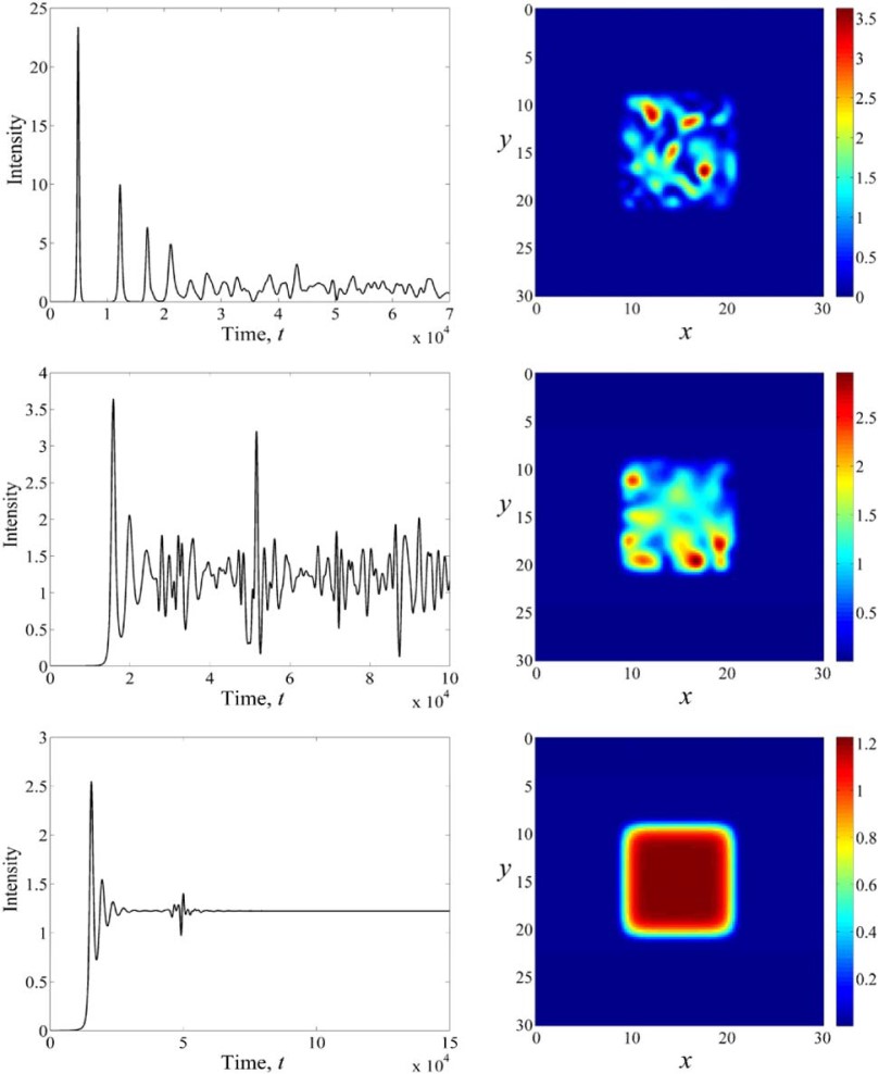В теоретическом секторе СФ ФИАН разработаны эффективные методы теоретического анализа и моделирования динамики оптических полей широкоапертурных лазеров, на основе которых созданы програмные комплексы. Аналитически и численно исследованы структуры, образующиеся в широкоапертурных лазерах различных динамических классов, способы контроля, управления и подавления их образования.