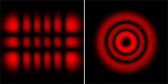 Рис.1. Примеры распределений интенсивности пучка Эрмита-Гаусса и пучка Лагерра-Гаусса.